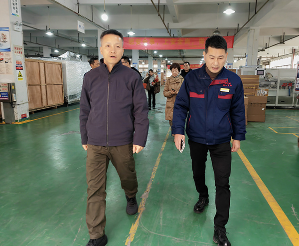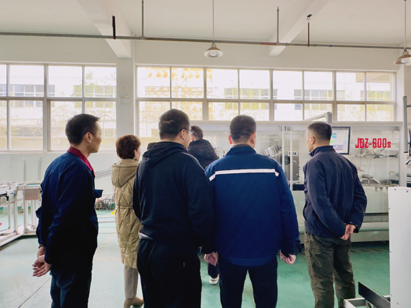 在走访期间,温包联执行会长蒋琪、邓亮等一行领导深入公司生产车间,实地考察生产运营情况并现场向领导们展示了公司自主研发的JDZ-600全伺服爱体育平台的高效运行。此设备凭借其先进的伺服技术和自动化控制,展现出卓越的生产效率和稳定性,赢得了领导们的一致赞誉。