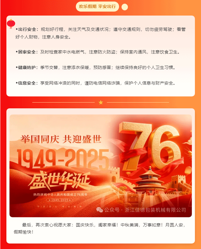 月为家圆,国邀同庆 | 浙江佳德2025“双节”放假通知