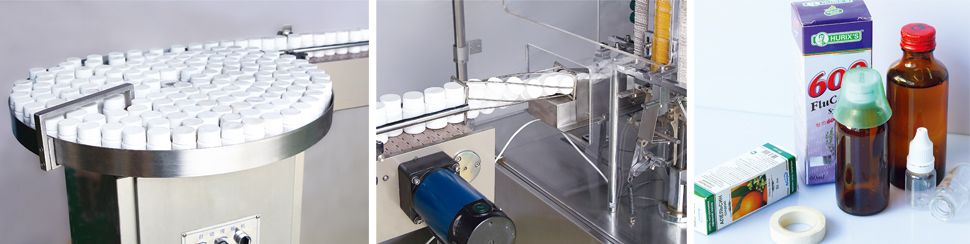 该机型适用瓶状物品的自动加料及装盒。在线自动瓶子整理输送、说明书折叠(1至4次折叠)与传送、说明书检测、纸盒吸取成形与传送、物料入盒、压印批号、纸盒两端纸舌封装(也可适用热熔胶)、缺料剔除及成品输出等全过程均属自动完成。